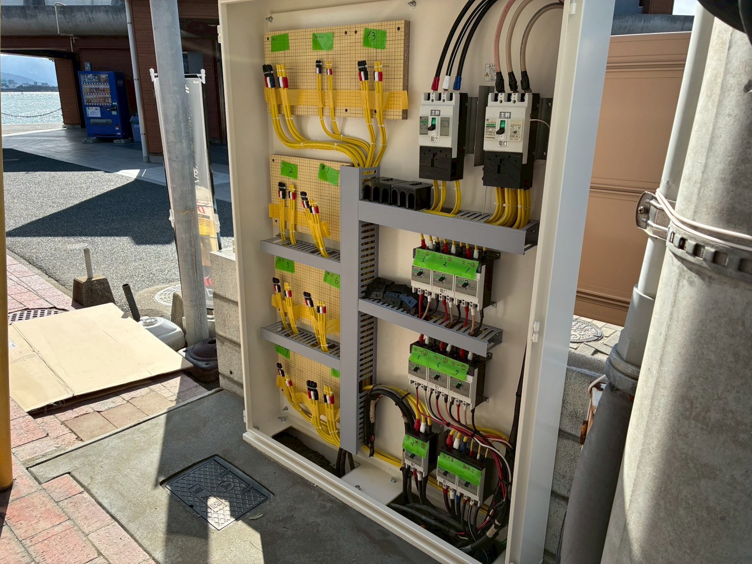 既存設備を撤去後、新しい引き込み盤を設置。