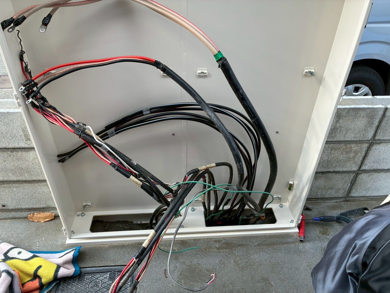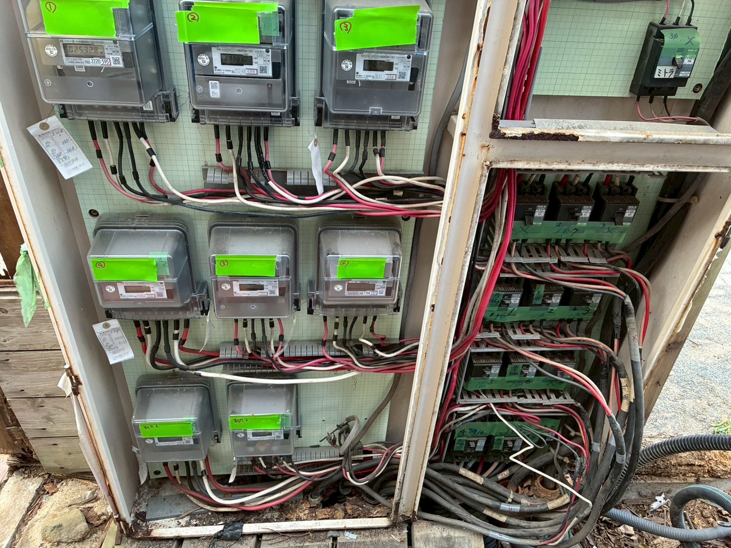 - 盤内が錆びている、配線が乱雑